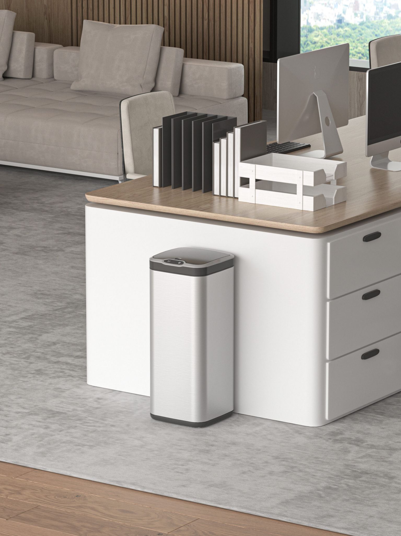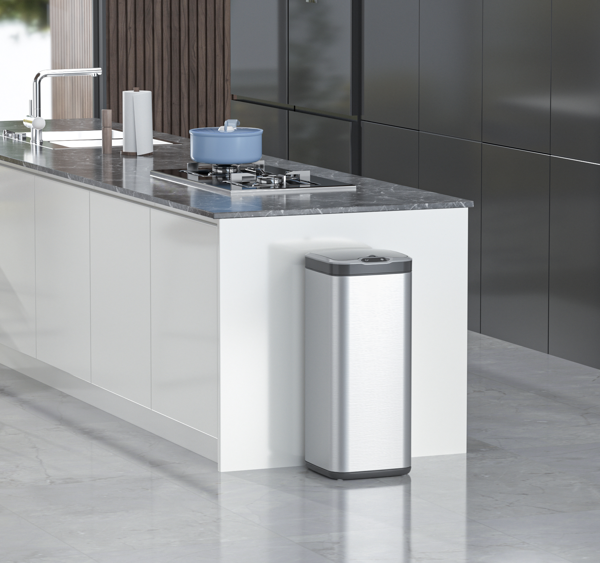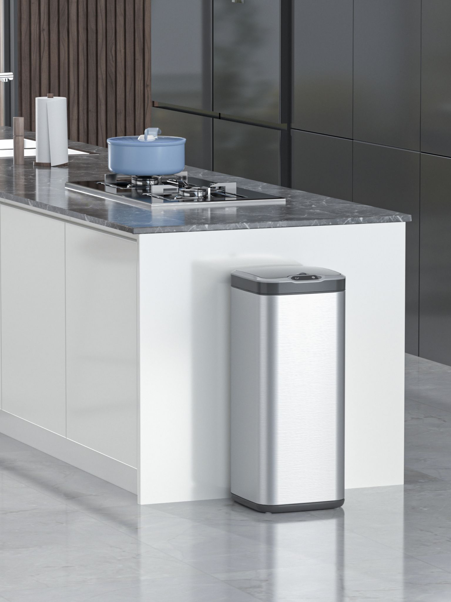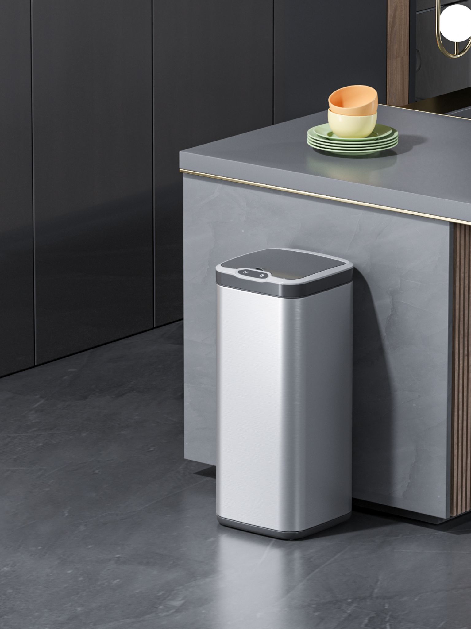 Slender Profile Design: The square base and comfortable height allow for easy trash disposal without bending over, while the compact design fits seamlessly in any space.